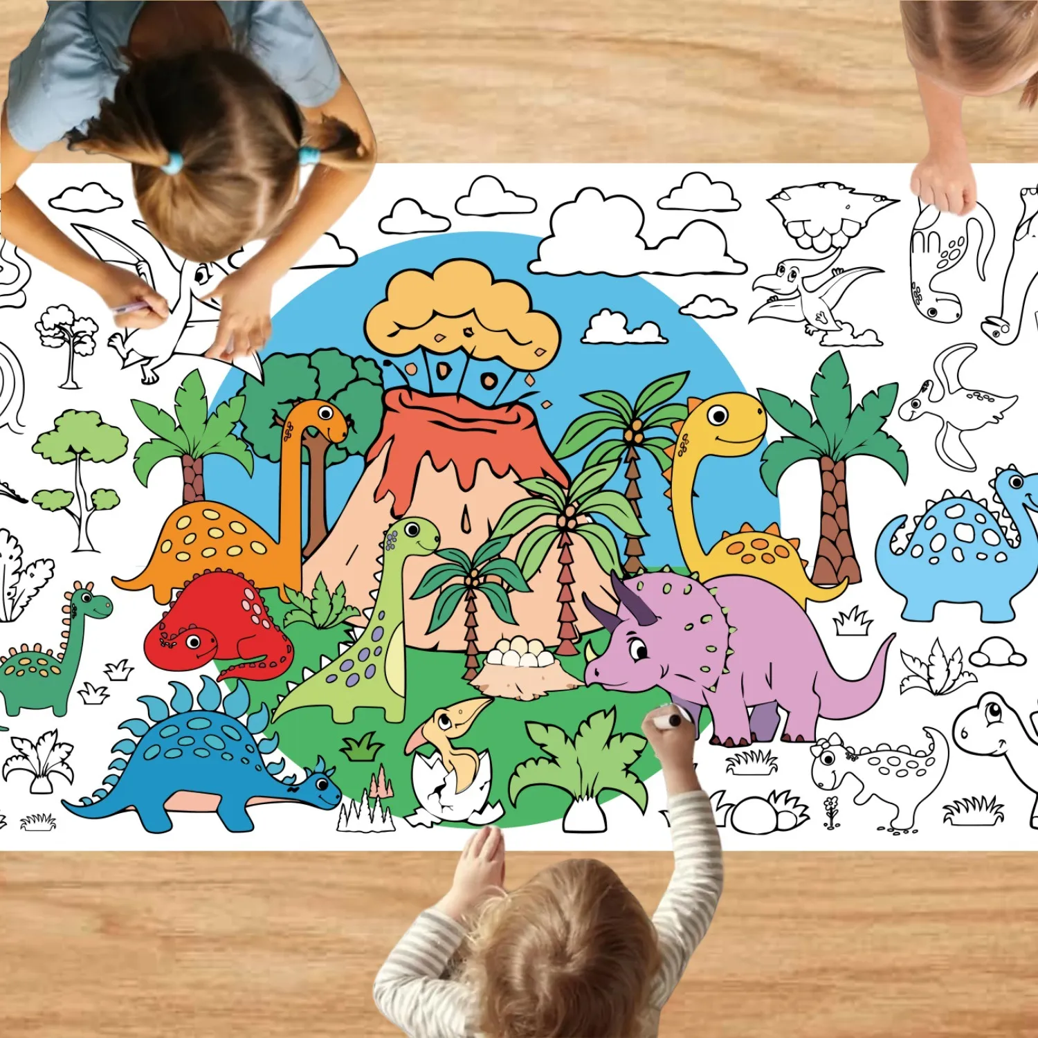 Volcanic Dinosaur Children's Colorful Painting Graffiti Waterproof Degradable Tablecloth