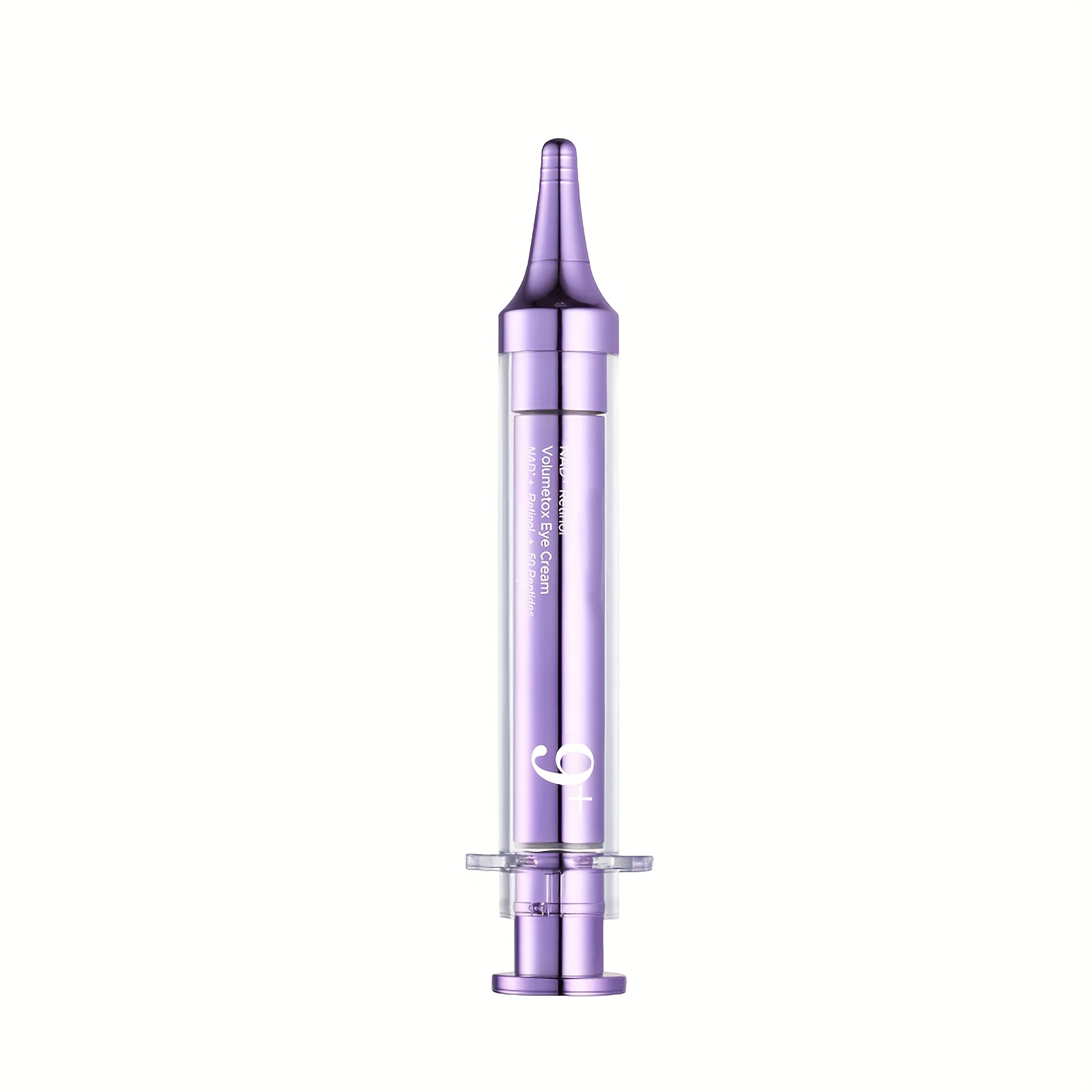 This Volumising Under-Eye Cream is packaged in a syringe-inspired applicator that allows precise dispensing and targeted application. The slim tip is shaped for use under the eyes, helping users apply cream evenly without excessive rubbing.