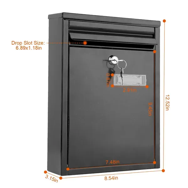 - Usage: Intended for outdoor use (home front, office entry, gate wall), for letters/mail and possibly small drop-items.