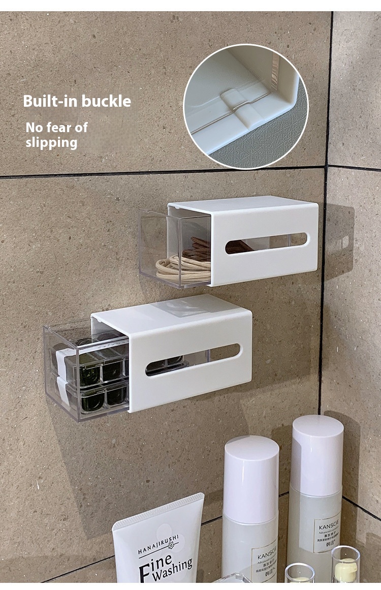 Organize your bathroom with our Wall-Mounted Drawer Storage Box for cotton puffs and cotton swabs. This sleek and functional storage solution keeps your essentials within easy reach.