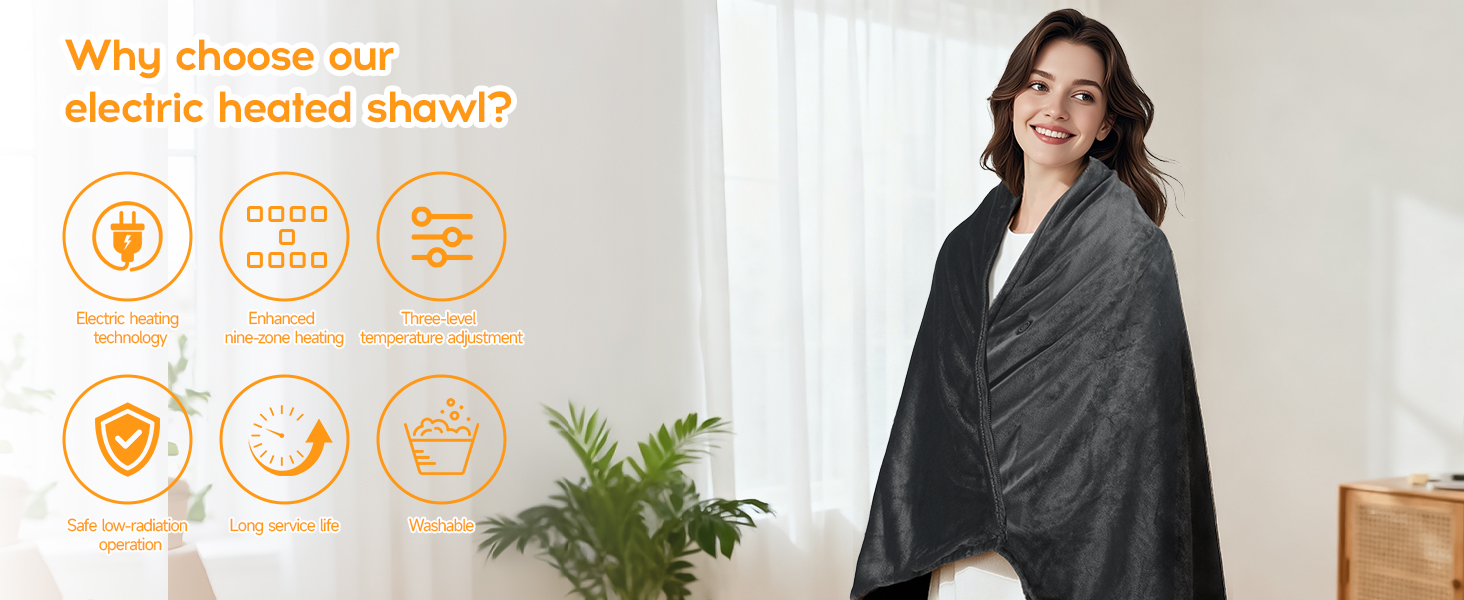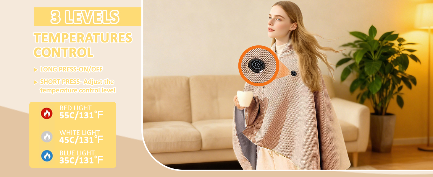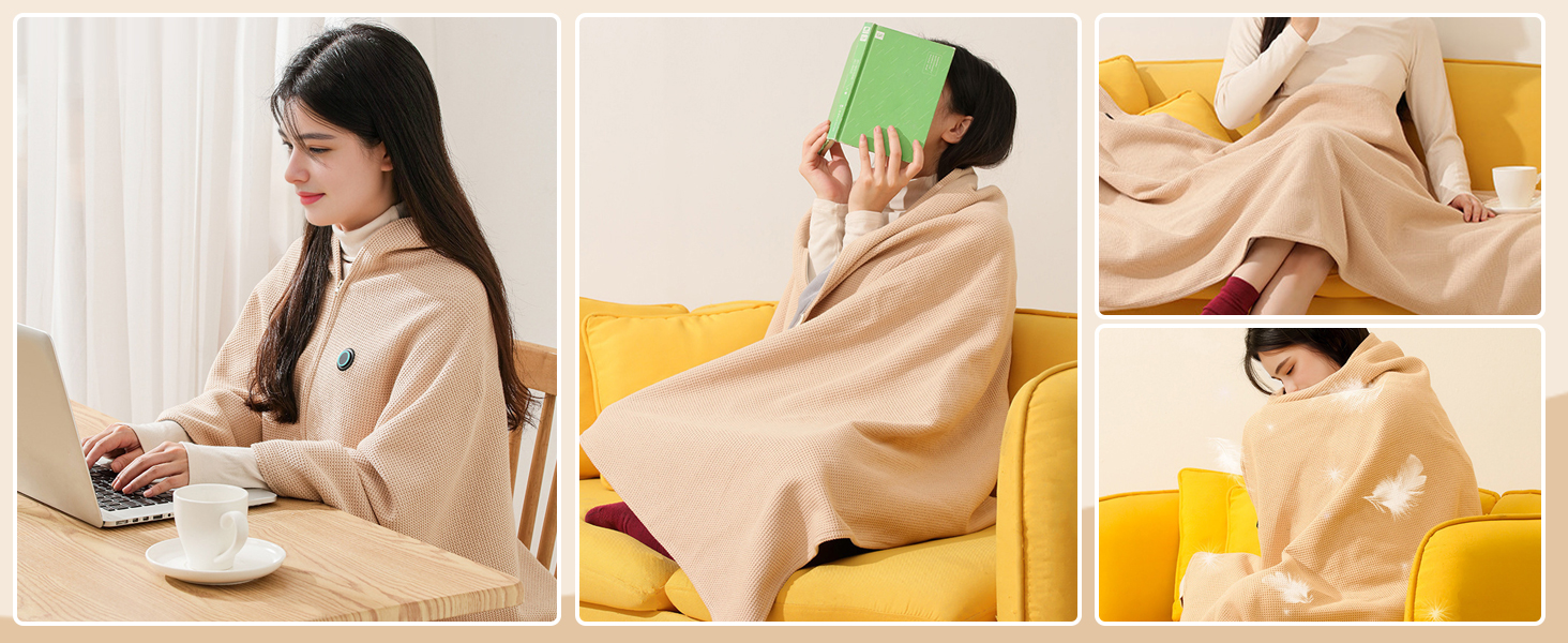 heated throws that can be cumbersome, this shawl wrap is designed for movement, travel and daily wear. It gives you personalized warmth when