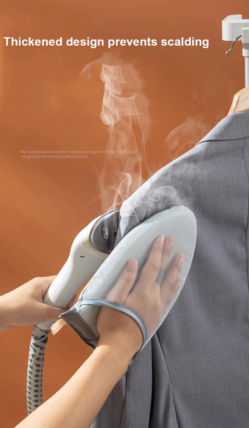 By using this small ironing board, it is more convenient to wear on the hand to iron the corners of clothes and prevent burns.