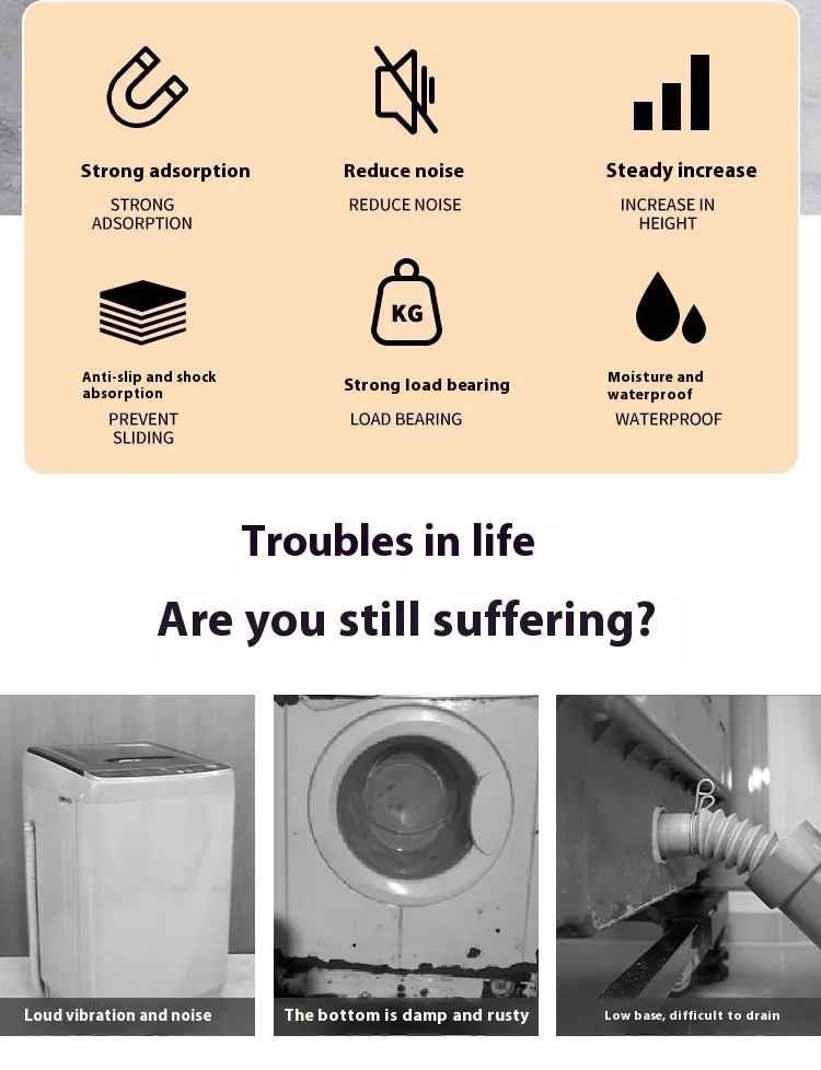 - Anti-Skid Design: Keeps your washing machine securely in place, preventing sliding and shifting.