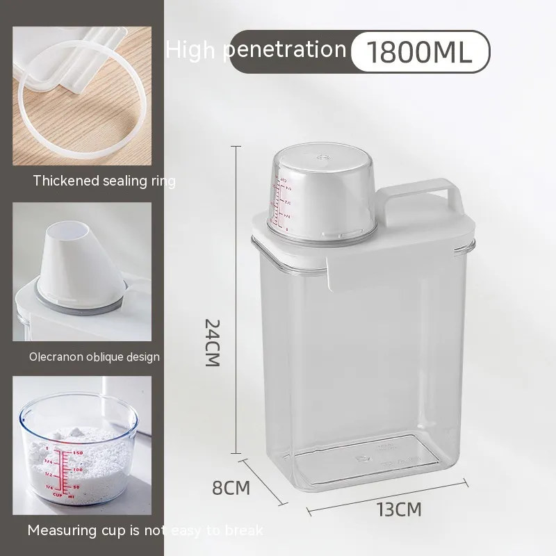 Made from durable, high-quality materials, this washing powder container is both practical and stylish. It provides a convenient way to store your detergent while preventing spills or messes. With its airtight lid and easy-pour spout, this container is designed to make laundry day more efficient and organized.