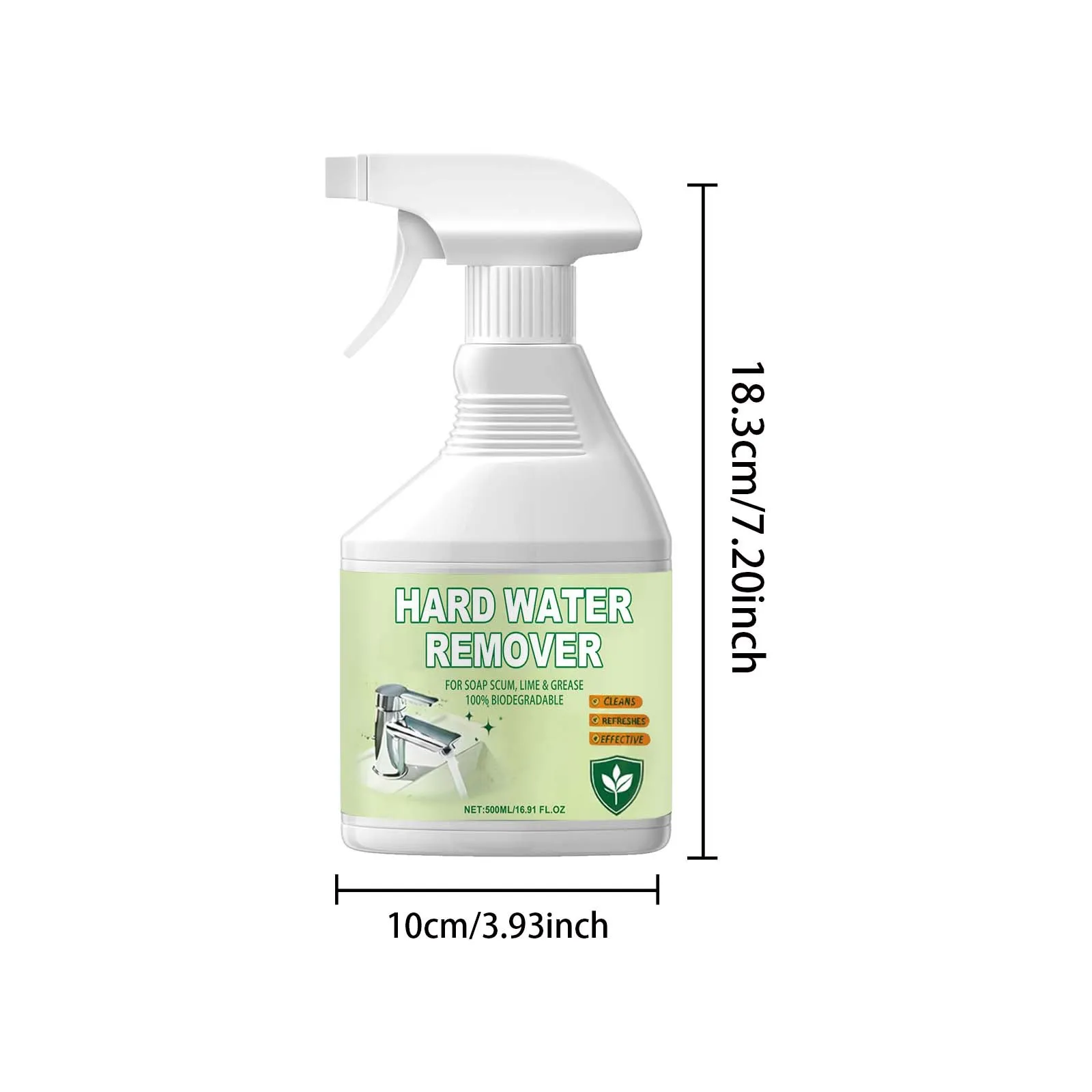 The remover is designed to be simple and convenient to use. Users spray or apply it directly onto the affected area, allow a short dwell time to let the agents penetrate and break down mineral bonds, then wipe or scrub gently with a microfiber cloth, soft sponge, or non-abrasive pad. Persistent spots may require additional passes or slightly longer dwell time, but the chemical action reduces the need for excessive mechanical force, preserving the finish of treated surfaces.