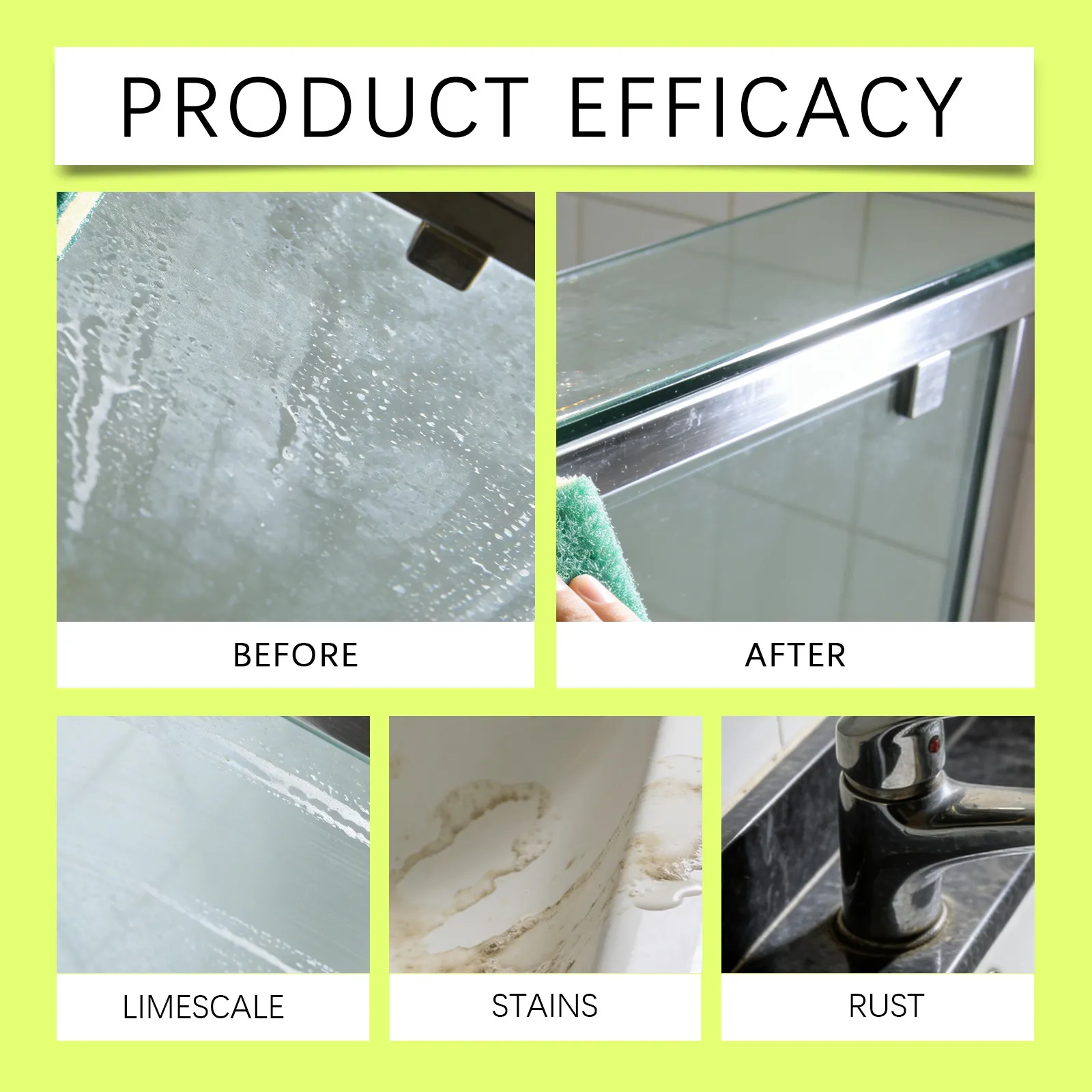 Restores Surface Clarity: Removes cloudy mineral films and spots to renew glass, tile, and metal aesthetics.