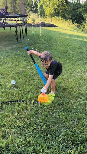 the included baseball to train baseball batting skills; the other is a 360° rotating nozzle with a wide spray area that allows children to