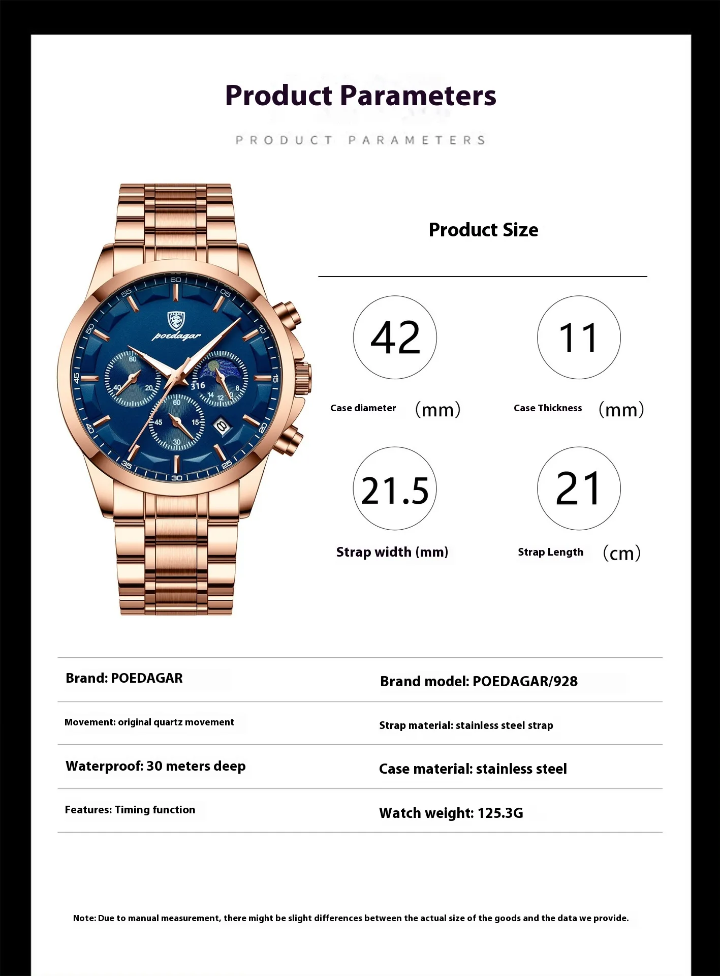 Color: P928 silver shell blue surface steel strip, P928 silver shell black surface steel strip, P928 rose gold blue surface steel strip,