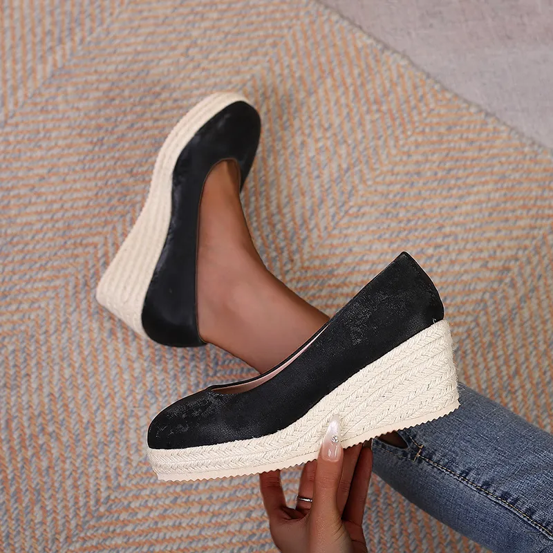 Wedge Thick Bottom Shallow Mouth Comfortable Rope Bottom High Heel Pumps