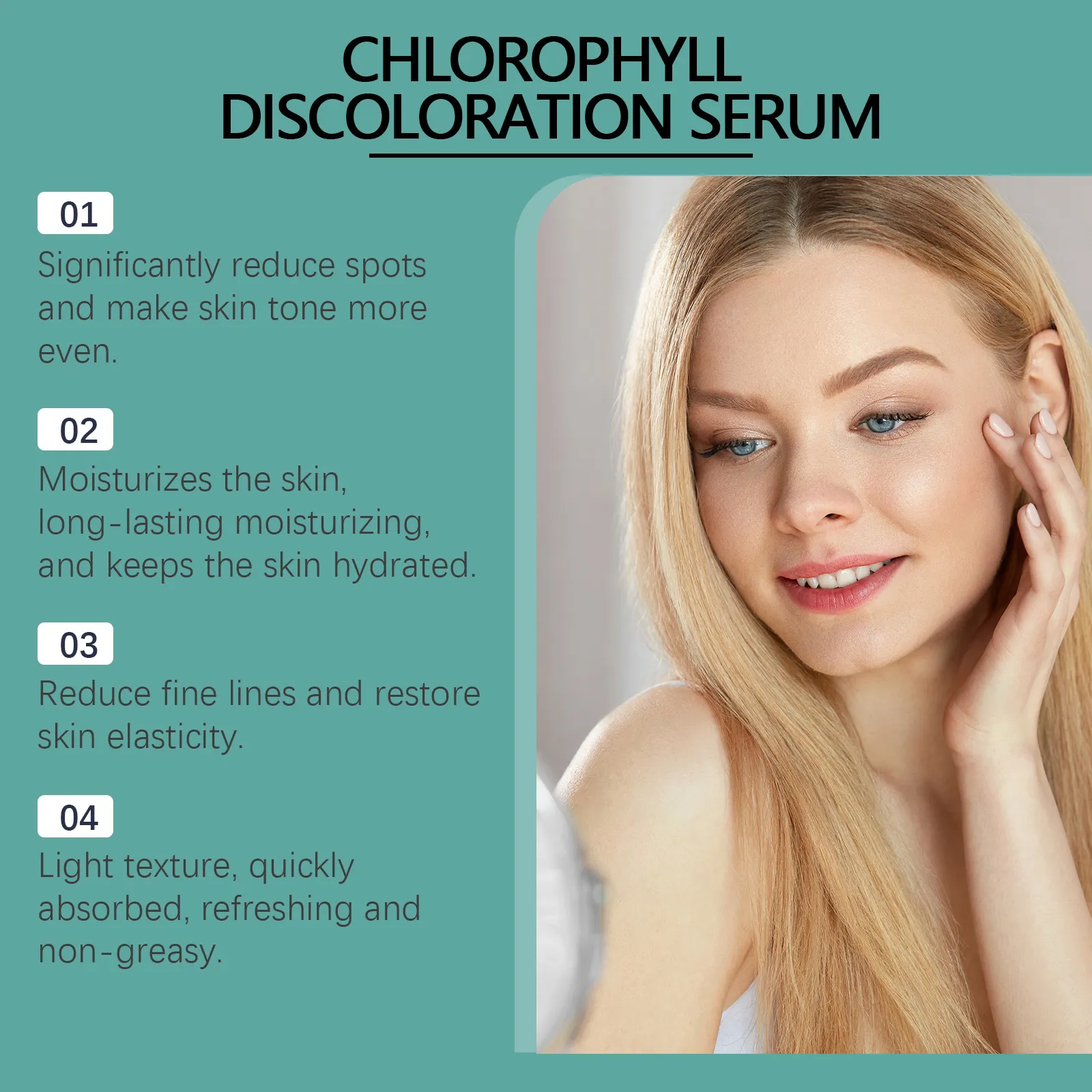 Skin Soothing: The chlorophyll in the serum helps calm the skin, making it ideal for irritated or sensitive skin.