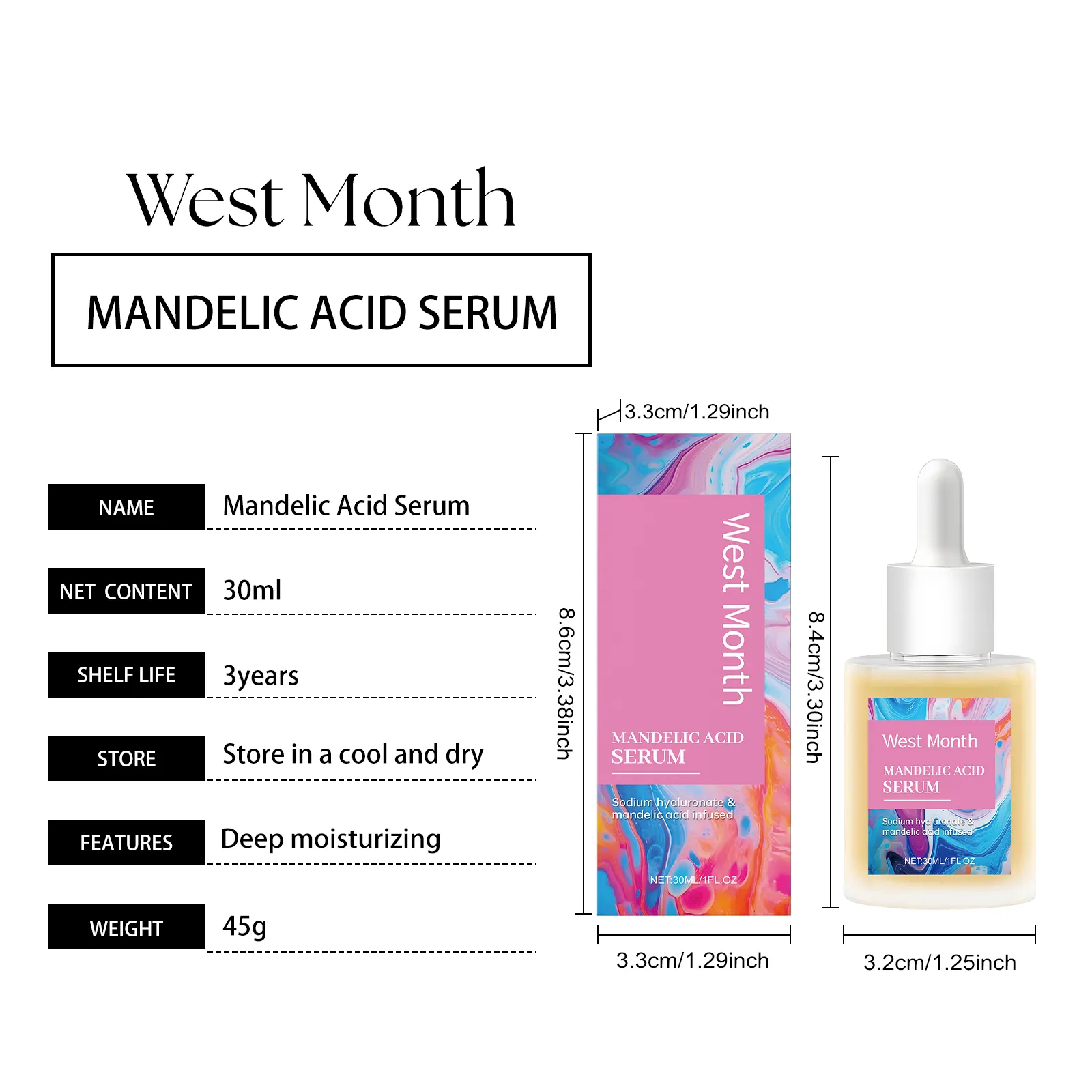 SEO Keywords: West Month Mandelic Acid Serum, brightening serum, exfoliating facial serum, mandelic acid serum, skin rejuvenation serum, hydration serum, anti-aging serum, acne scar serum