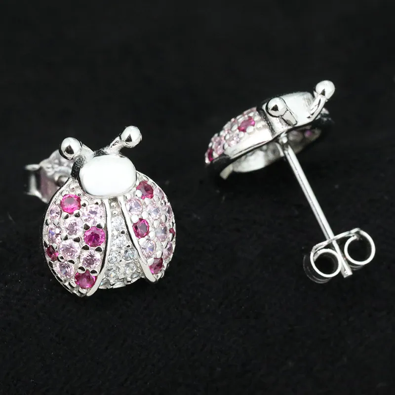 White Copper LADYBIRD Earrings Anti-allergy Girls