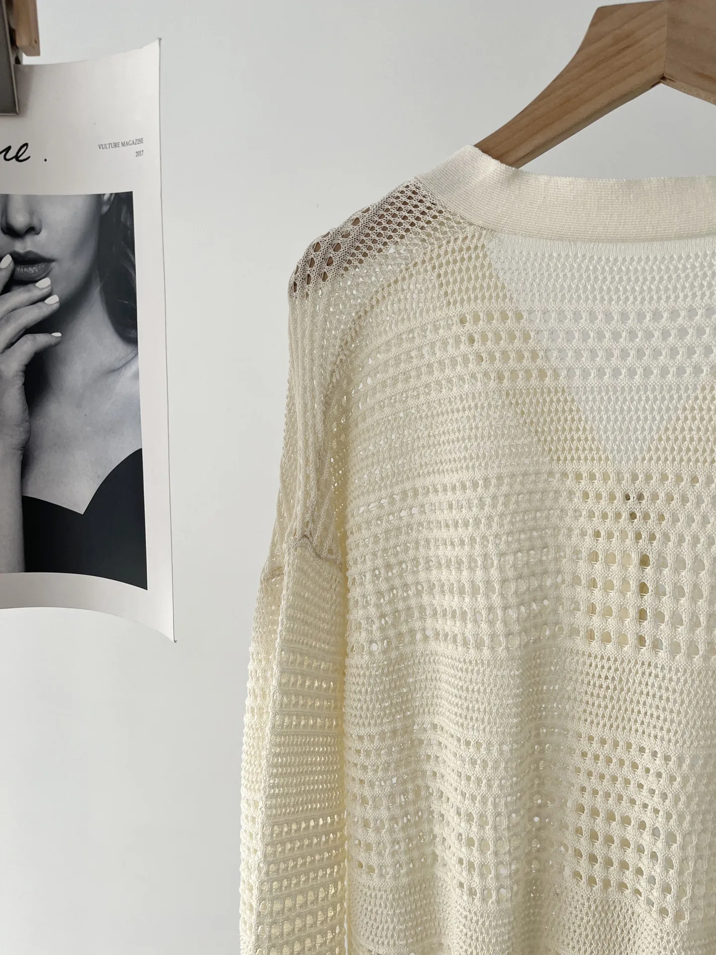 White Dignified Hollow Cardigan Outer Wear Sweater