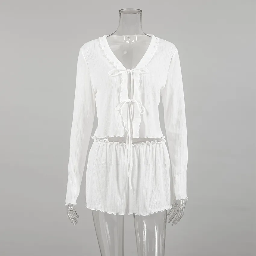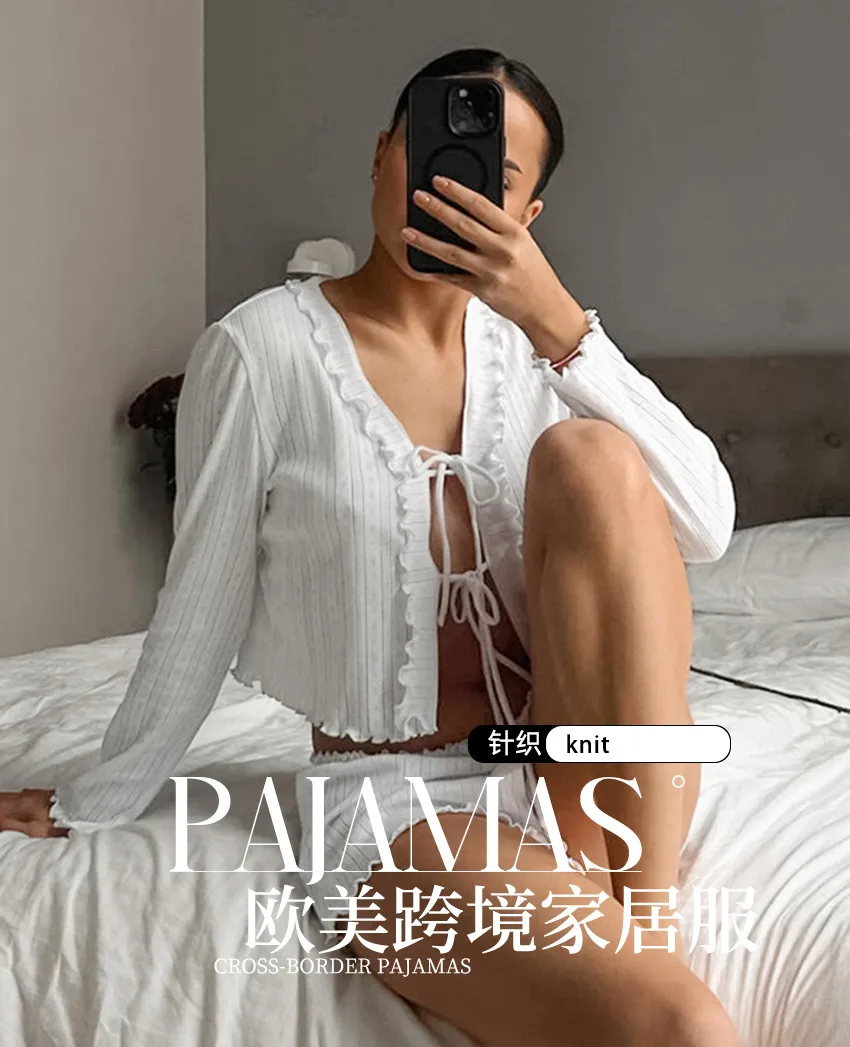 Home › Plants, Gifts, Toys & More › Gift-tree-white-hollow-out-jacquard-pajamas-suit-cardigan-long-sleeve-shorts-homewear