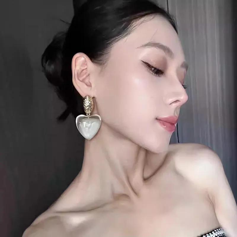 Pair the White Resin Love Heart Earrings with a casual blouse and denim jeans for a laid-back yet stylish look. The earrings add a touch of elegance without being too bold, making them perfect for casual outings, coffee dates, or a day at the park.