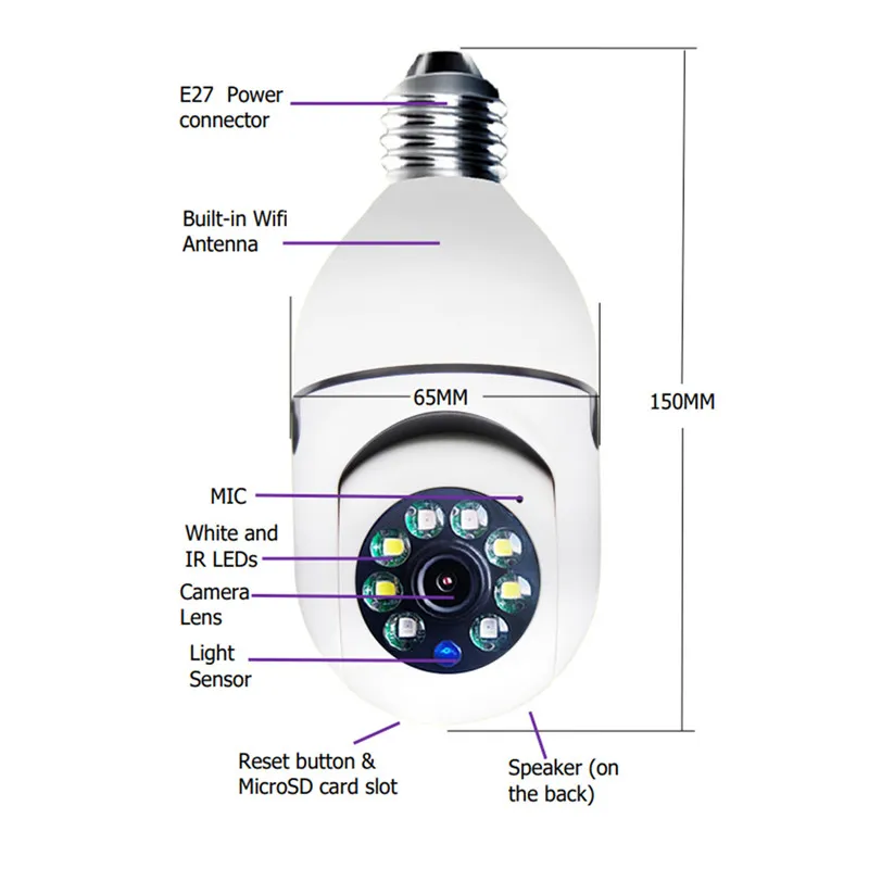 The WiFi Camera 1080P Bulb is packed with high-tech features that make it an ideal solution for anyone looking for smart, reliable, and discreet security surveillance. Here are the key features that set it apart: