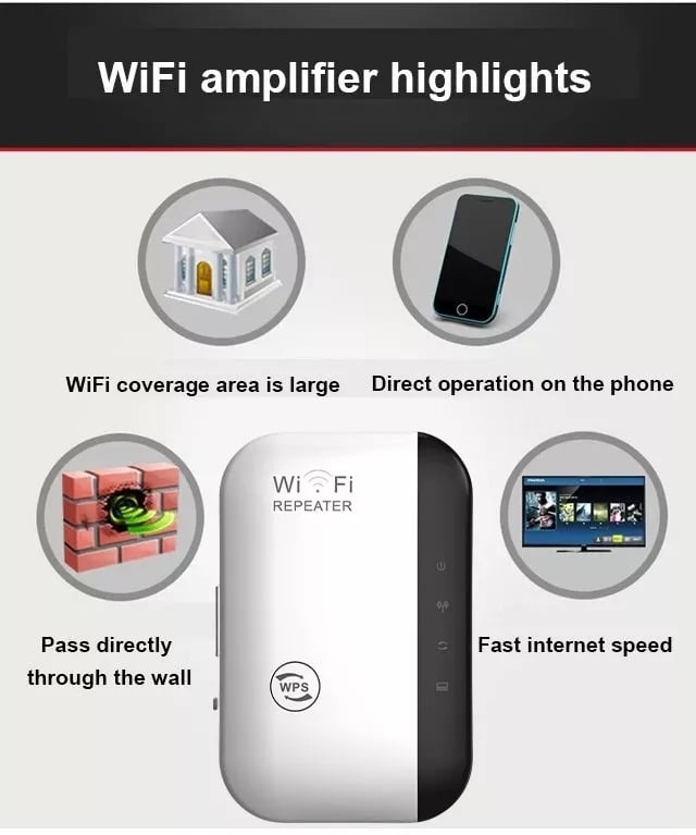 - Package includes: 1 x WIFI SIGNAL BOOSTERÂ