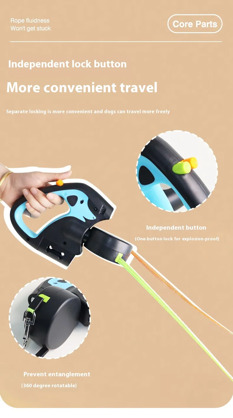 Each leash extends and retracts independently, allowing dogs to enjoy freedom of movement while remaining safely under control. This independence helps prevent sudden jerks that can occur when one dog stops or changes direction, improving comfort and safety for everyone involved.