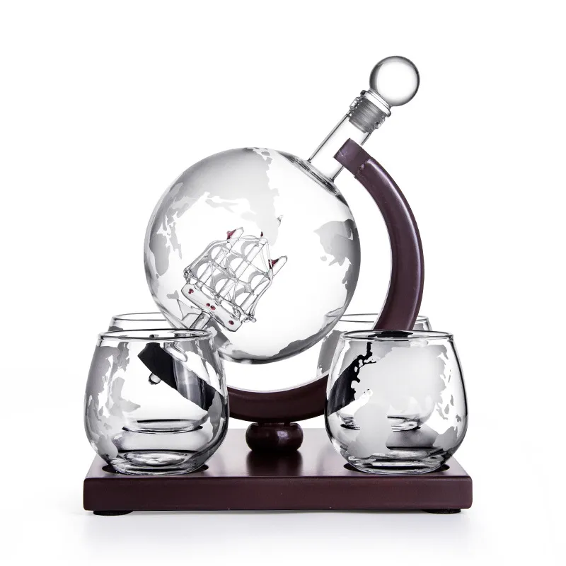 The wooden frame surrounding the sailing glass wine bottle provides stability and support while adding a rustic yet sophisticated touch. The high-quality wood construction complements the modern glass design, creating a timeless piece that looks beautiful in both contemporary and classic décor settings. This frame ensures that the wine bottle is securely displayed, preventing any accidental tipping or damage.