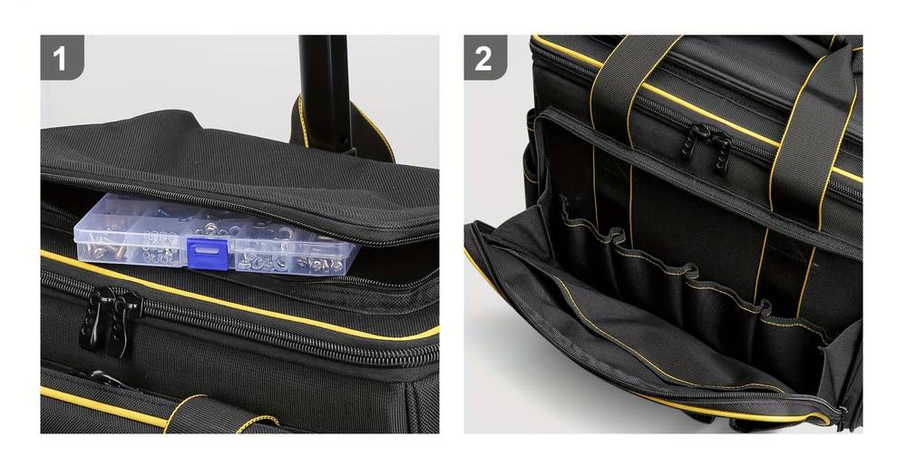 Multiple Compartments: Designed with several pockets and compartments to help you organize and store your tools