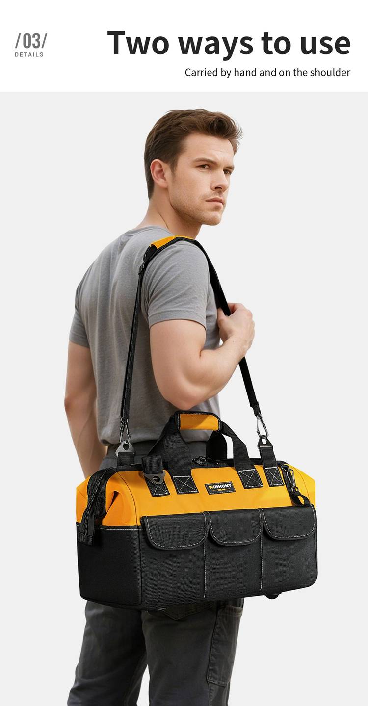Comfortable Carrying Options: The soft handle and adjustable shoulder strap ensure that carrying heavy tools is easy on