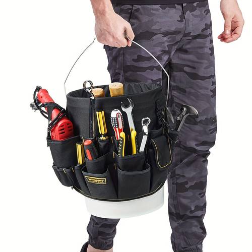 The WINHUNT Heavy-Duty Bucket Tool Organizer is designed to keep your tools organized, easily accessible, and securely stored. Constructed from durable polyester fabric, this organizer features reinforced stitching to ensure long-lasting use, even in the most demanding environments. The multiple compartments are ideal for storing a variety of tools such as wrenches, screwdrivers, and hammers, while the ergonomic pocket design offers quick and easy access to your essential tools.