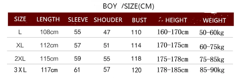 Size: 160 (M), 165 (L), 170 (XL), 175 (XXL), 180 (XXXL)