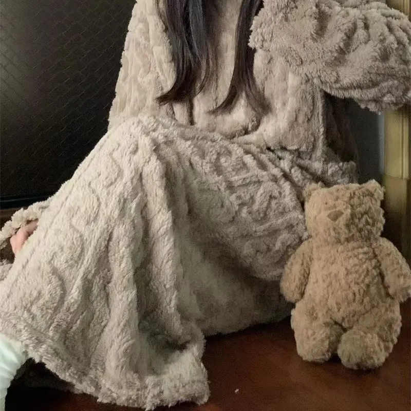 Perfect for the cold season, this coral fleece night dress is a versatile addition to your home wardrobe. Whether you are winding down after a long day or enjoying a lazy weekend morning, this warm and stylish nightgown wraps you in comfort. Its thickened fabric is easy to maintain and durable, ensuring it remains soft and cozy wash after wash. Embrace the winter season with a blend of style and warmth with our jacquard night dress, the ideal choice for cozy home living.