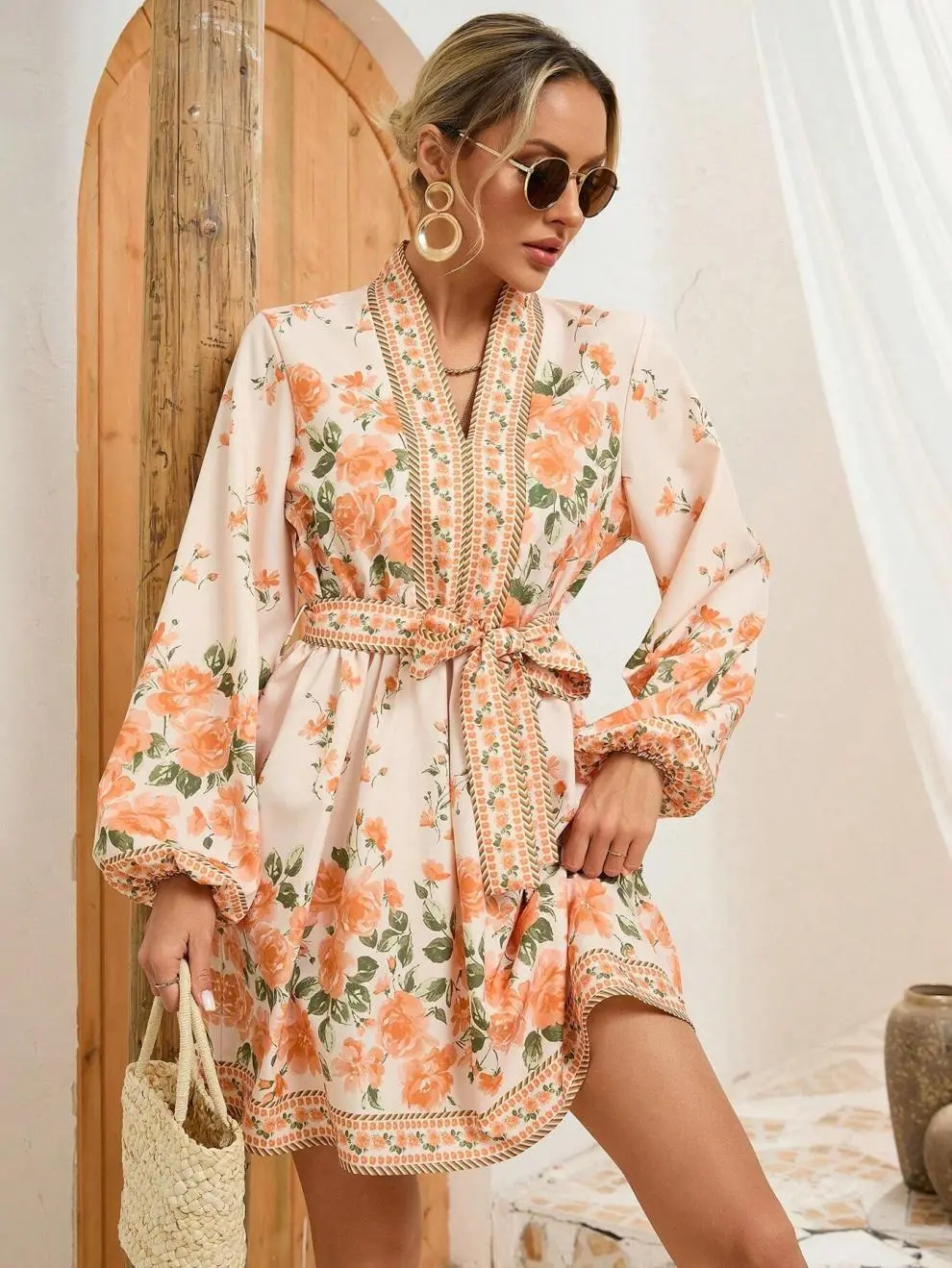 Elegant and Feminine: The combination of the floral print, long sleeves, and tie-waist design creates an elegant, feminine