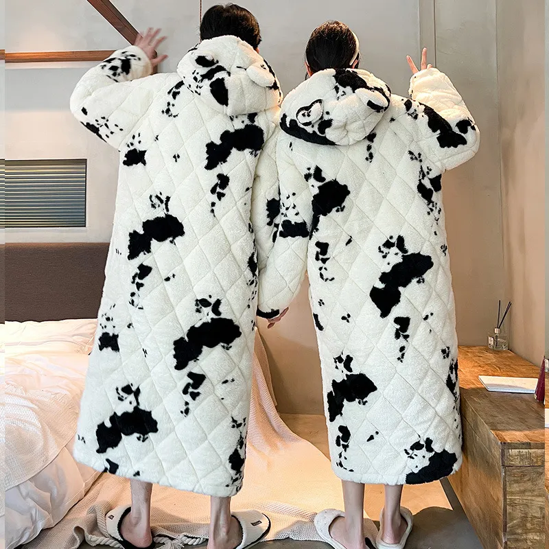 Embrace the warmth and comfort of winter with the Winter Men's Quilted Cow Pajamas Thick Coral Fleece Bathrobe Homewear Nightgown. Designed to keep you cozy and stylish, this nightgown is perfect for those chilly evenings when all you want is to unwind in complete comfort. Crafted with soft, plush coral fleece and featuring a quilted cow pattern, this bathrobe offers the perfect combination of insulation, style, and softness, making it an essential piece for your winter wardrobe.