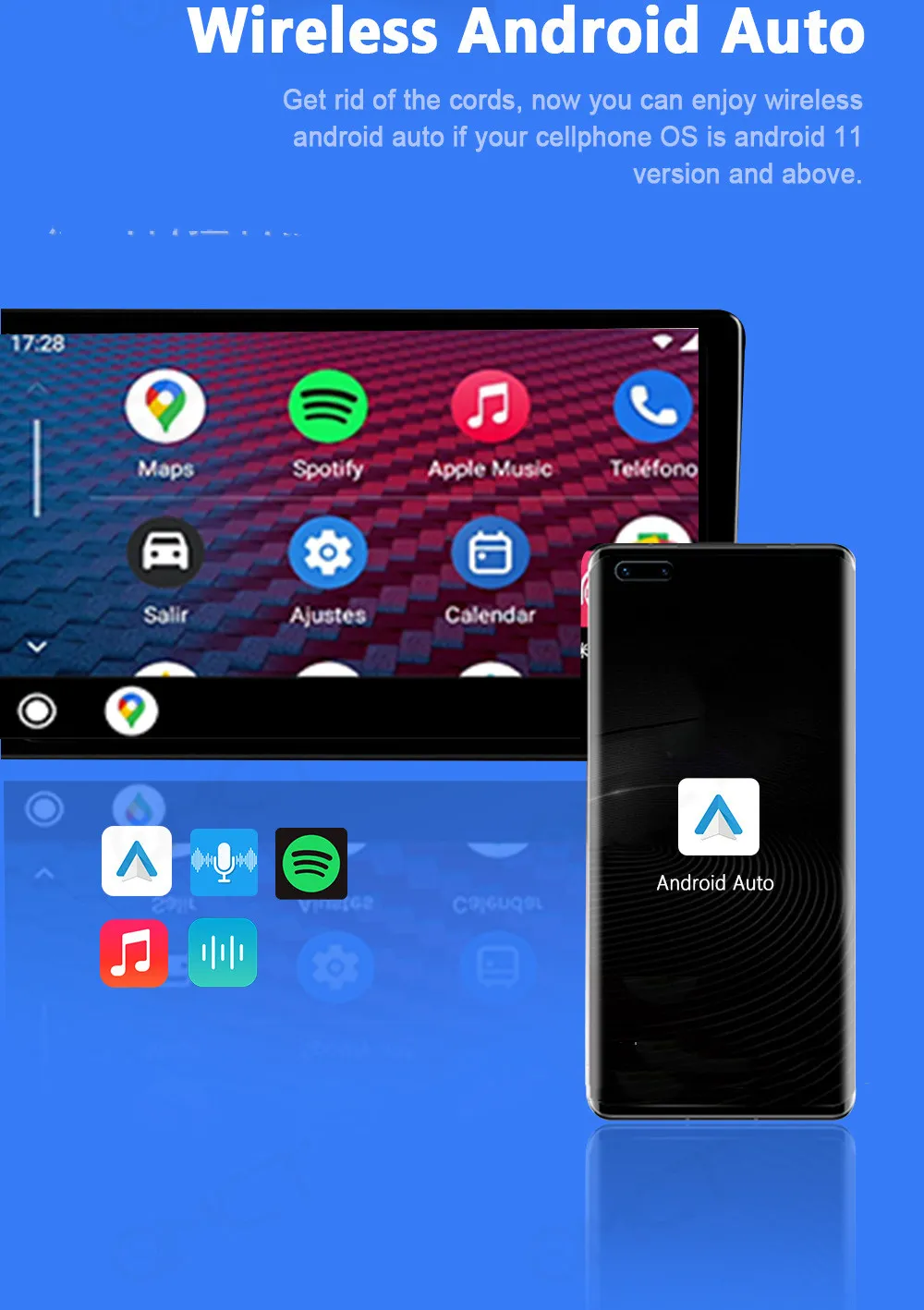 - By going wireless, you remove the need for phone chargers, auxiliary cables, and other accessories cluttering your dashboard.