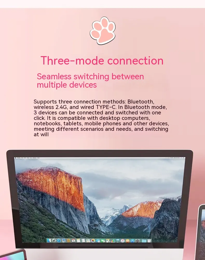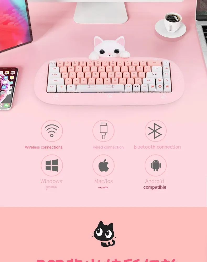 Experience the perfect blend of performance and style with our Wireless Bluetooth E-sports Mini Mechanical Keyboard. Crafted for e-sports enthusiasts and office workers alike, this compact keyboard brings a playful aesthetic to your setup with its cute design while delivering the precision and speed of mechanical switches. The wireless Bluetooth capability ensures you can connect seamlessly to multiple devices, providing the flexibility to switch between gaming and productivity tasks effortlessly. With its durable, responsive keys, this mini keyboard is perfect for fast-paced e-sports gaming, ensuring every keystroke is registered instantly, giving you a competitive edge.