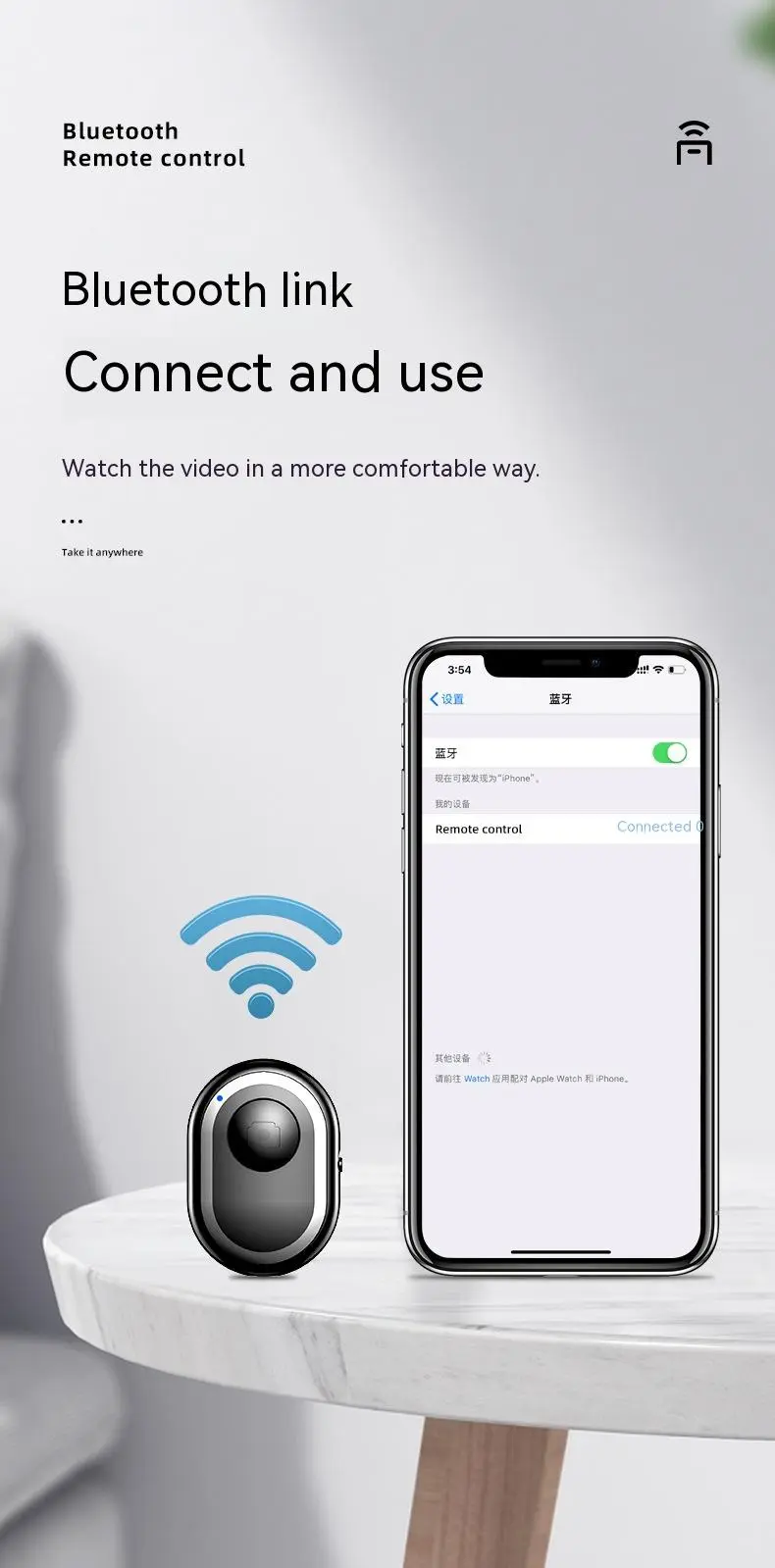 Bluetooth Connectivity: Easily pair the remote with your smartphone or camera via Bluetooth for wireless control, ensuring