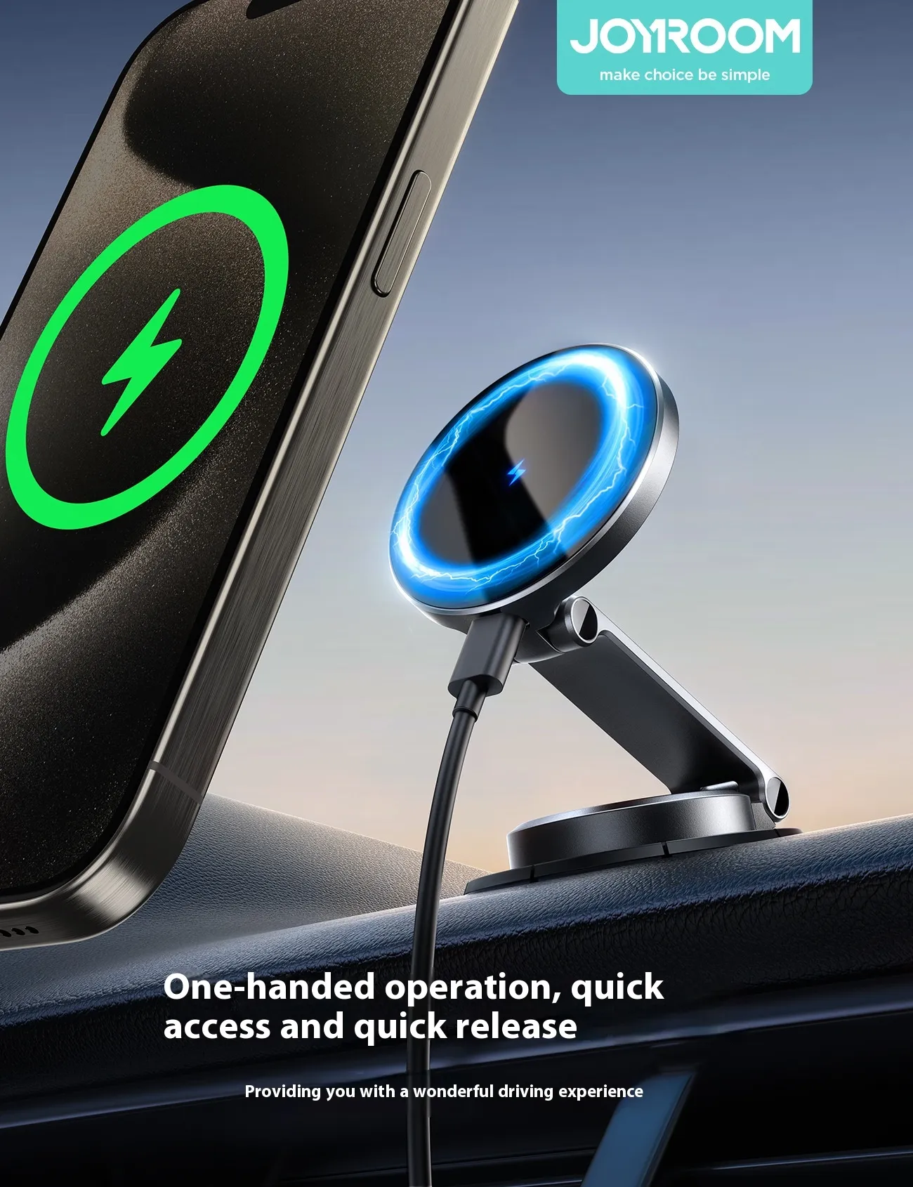 Its strong grip design ensures your device stays secure on the dashboard or air vent, while automatic alignment with wireless charging allows effortless power delivery. The adjustable viewing angles provide an optimal line of sight for navigation, calls, or media use, ensuring both convenience and safety.