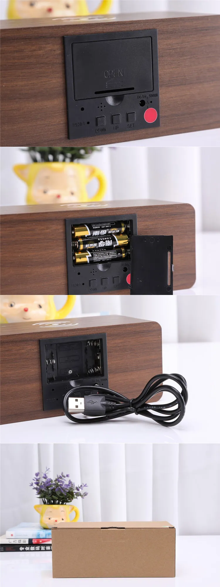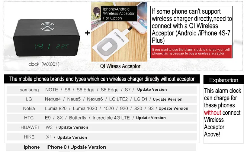 Wireless Charging Pad: Charge your Qi-enabled devices such as smartphones, earbuds, and smartwatches directly on the clock