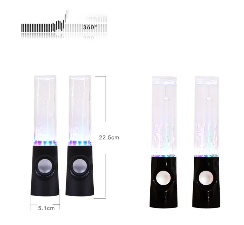 After connecting the audio device, the speaker will emit a colorful water column with the rhythm of the music, the color LED lights, against