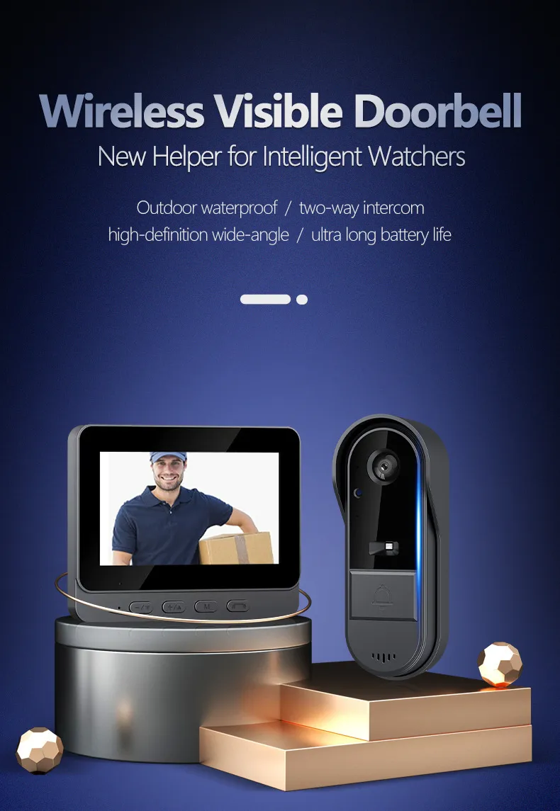 The Wireless Doorbell Camera is the perfect addition to any home, offering a high-definition 1080P camera with a wide 170° angle for comprehensive monitoring. With a 4.3-inch screen, IPX65 outdoor waterproof rating, and advanced night vision, this doorbell camera ensures you stay connected and secure, day or night. Whether you want to monitor visitors, increase home security, or ensure your loved ones' safety, this wireless doorbell camera provides the features you need.