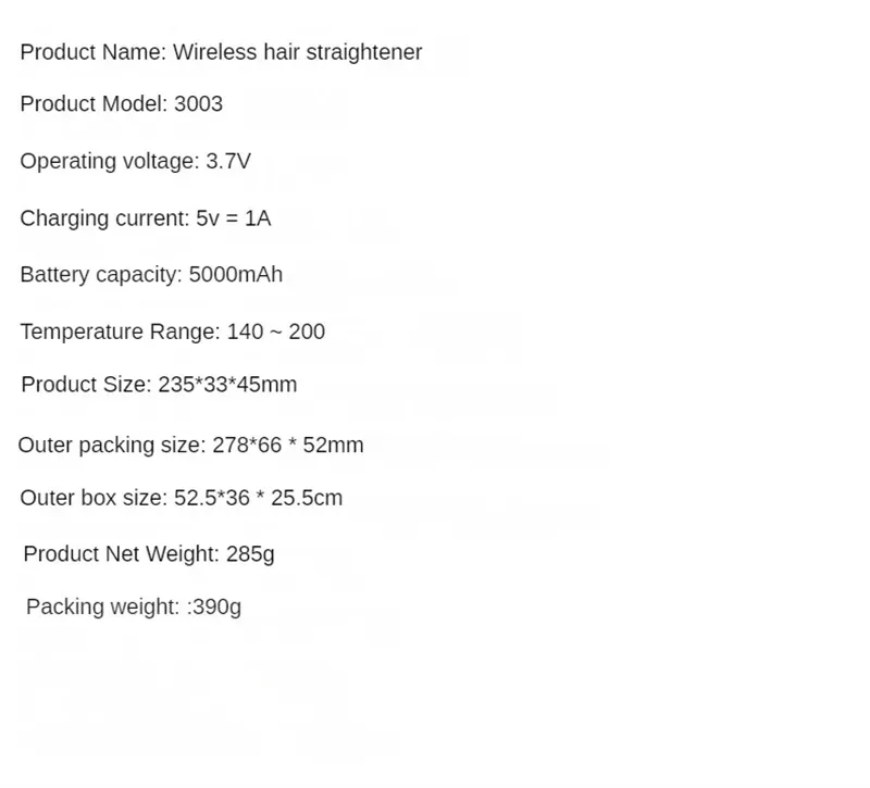 Product name: Wireless hair straightener