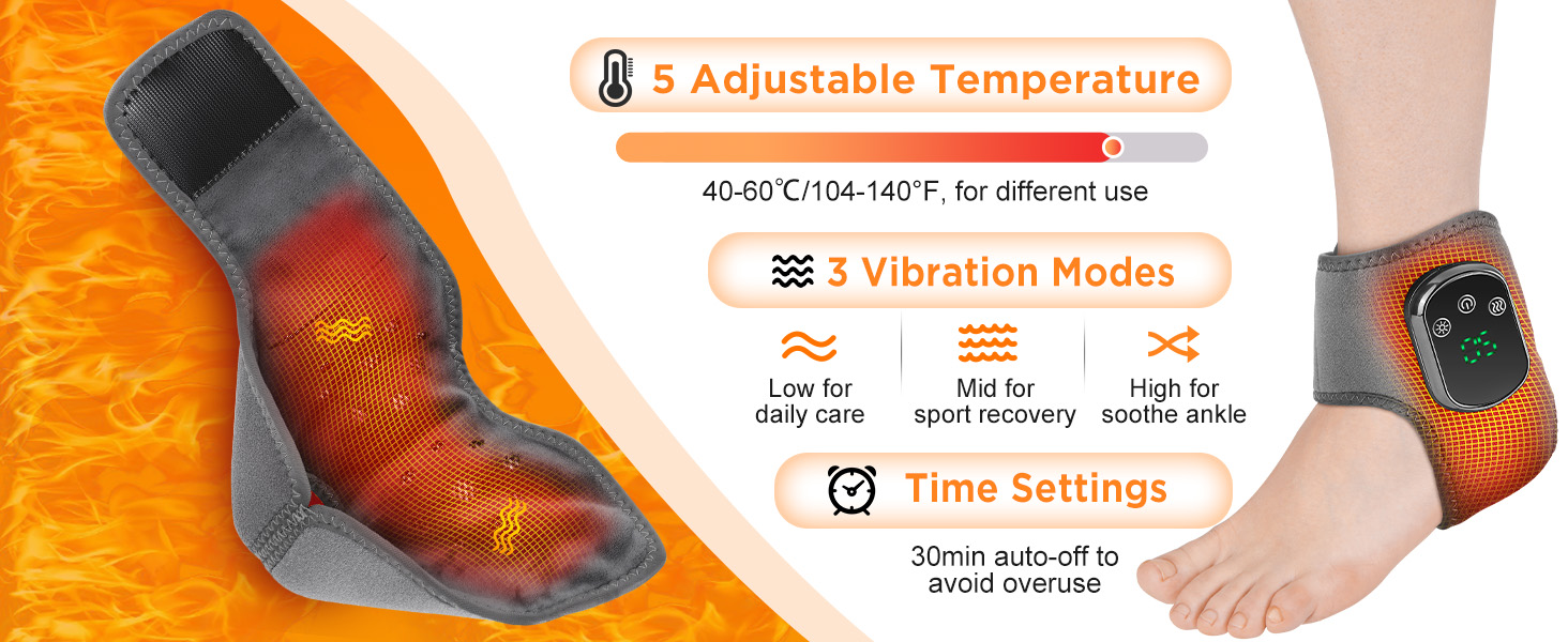 Pain Relief & Relaxation: The combination of heat and massage helps to alleviate ankle pain, reduce muscle tension, and