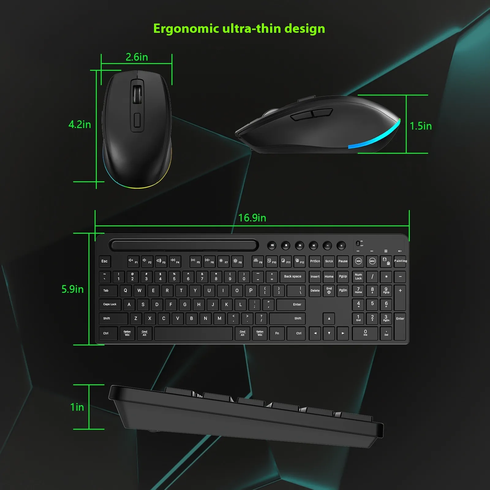 Wireless Keyboard and Mouse One-piece Set – Luminous Ergonomic Design