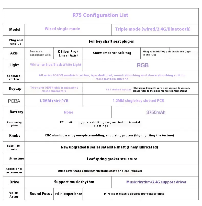 Pro-RGB hot plug-smoke rain axis V2-single mode, milk Taro RGB hot plug-Kaihua Zhi speed axis-single mode, evergreen Pro-RGB hot plug-Snow