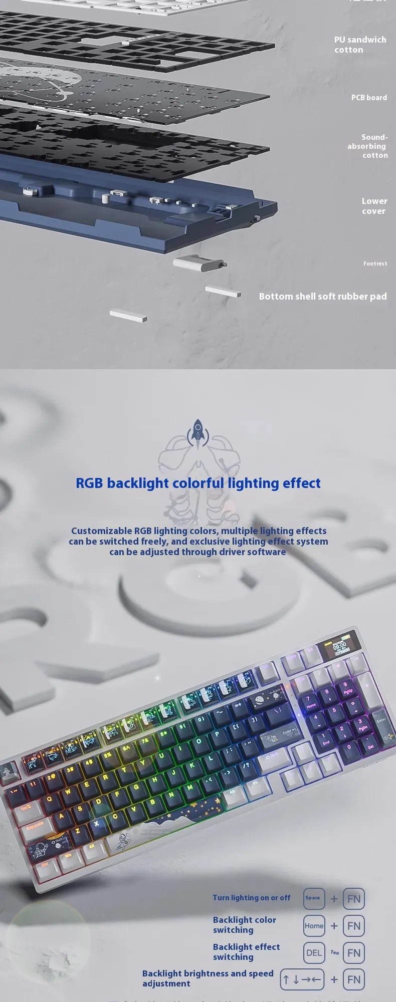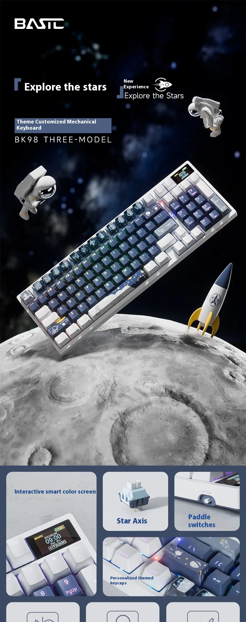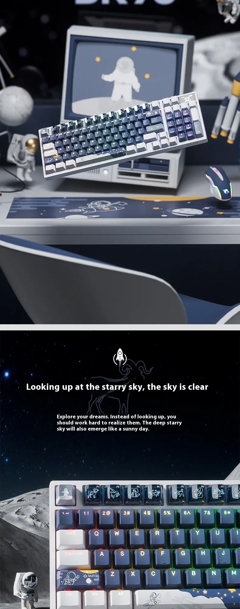 Color: Explore starry sky-green axis * ice blue light [single mode wired color screen heat exchange], astronaut-red axis * ice blue light