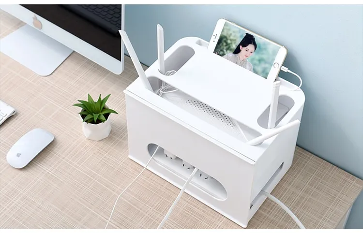 Designed with proper ventilation in mind, this storage box features ventilation holes or mesh panels that allow for effective airflow. This ensures that your router remains cool during use, preventing overheating and optimizing performance.