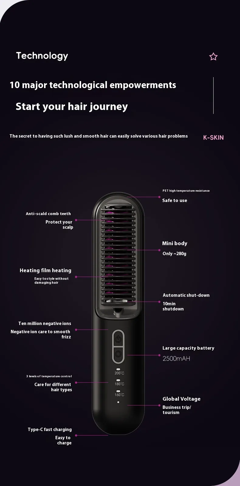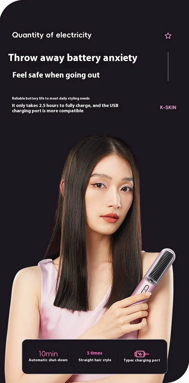 If you’re tired of bulky straighteners and cables getting in the way of your styling routine, the Wireless Straight Comb offers a sleek, cord-free solution. With anion hair care technology and easy portability, it’s the ideal tool for anyone looking to achieve perfectly straight hair while promoting hair health. Whether you’re at home, in the office, or traveling, this portable straightening comb is the must-have styling tool that fits seamlessly into your busy life.