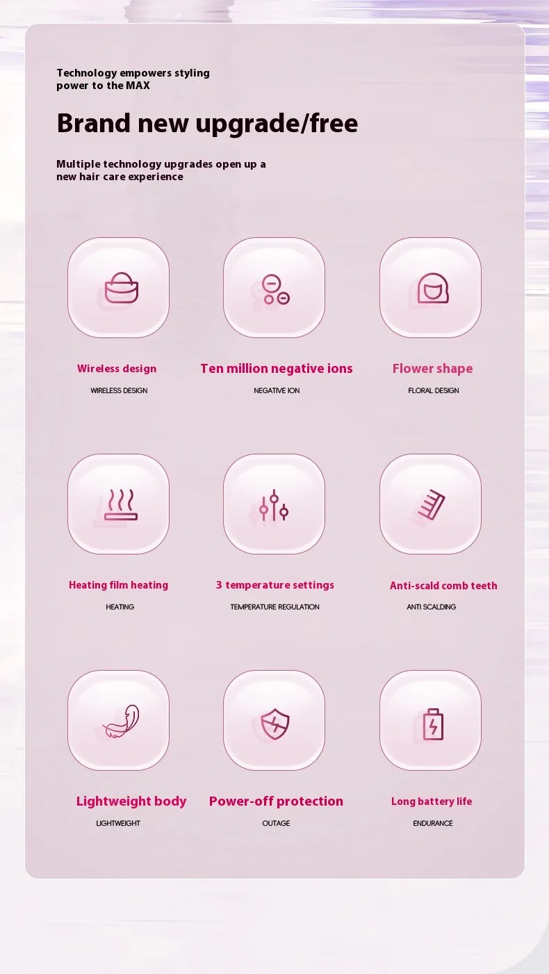 Key Features of the Wireless Straight Comb Portable 60 Million Anion Hair Care Electric Comb