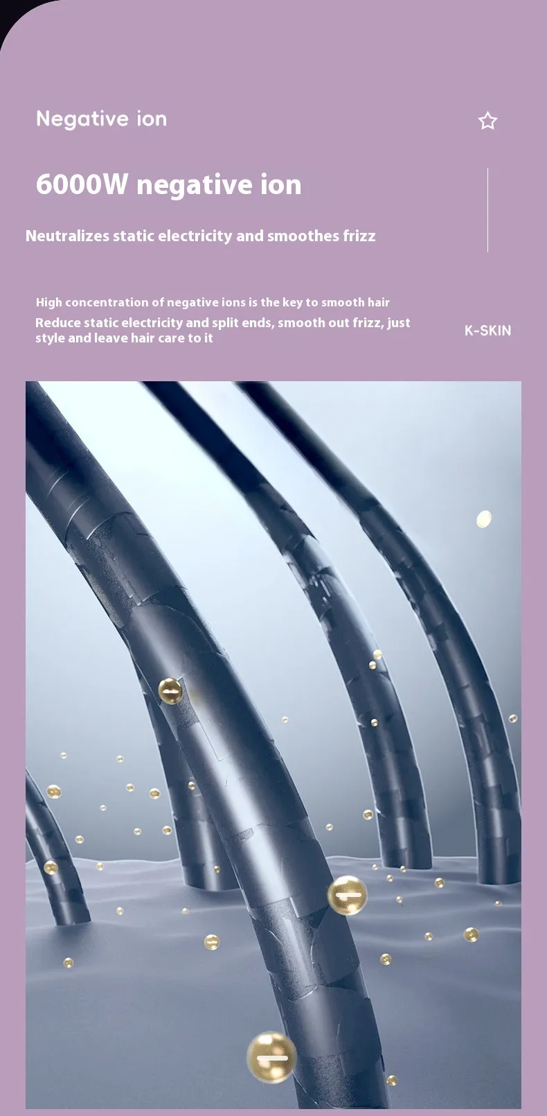 - Generates millions of negative ions to eliminate frizz, lock in moisture, and keep hair shiny and smooth.