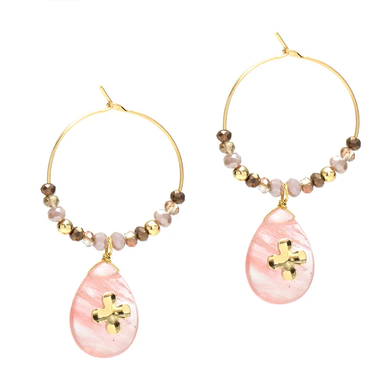 How to Style the Women's Fashion Natural Stone Hoop Earrings with Pink Waterdrop Stone