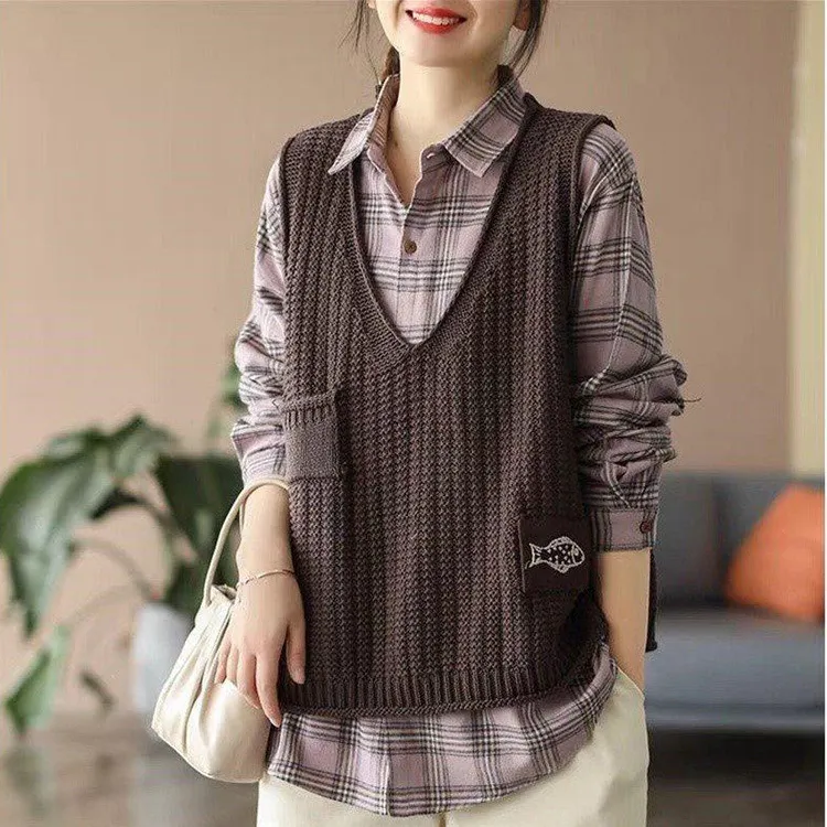 Women Knitted Vest Women V-Neck Loose