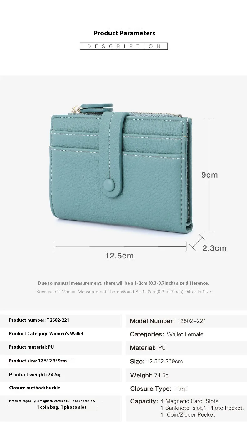 Wallet For Women Structure: Enough for fitting plenty of cards, change and some bills, coins, keep them well organized, compact but roomy, slim minimalist wallet, not too bulky.