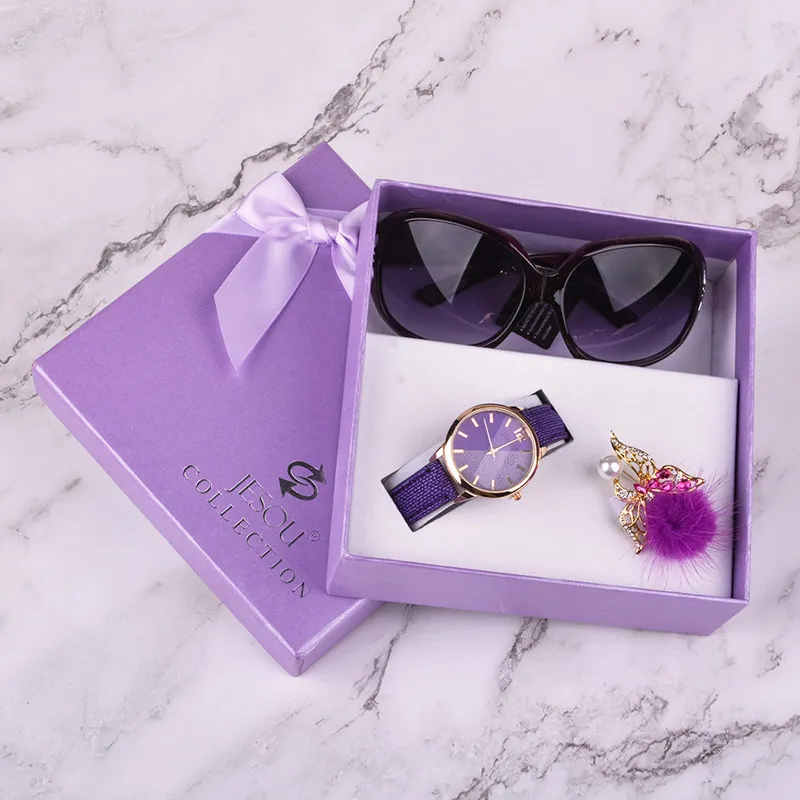 Women Watches Leather Quartz Wristwatch Sunglasses Corsage 3 Pcs Girl Christmas Gift New Year Gift Ladies Gift Box